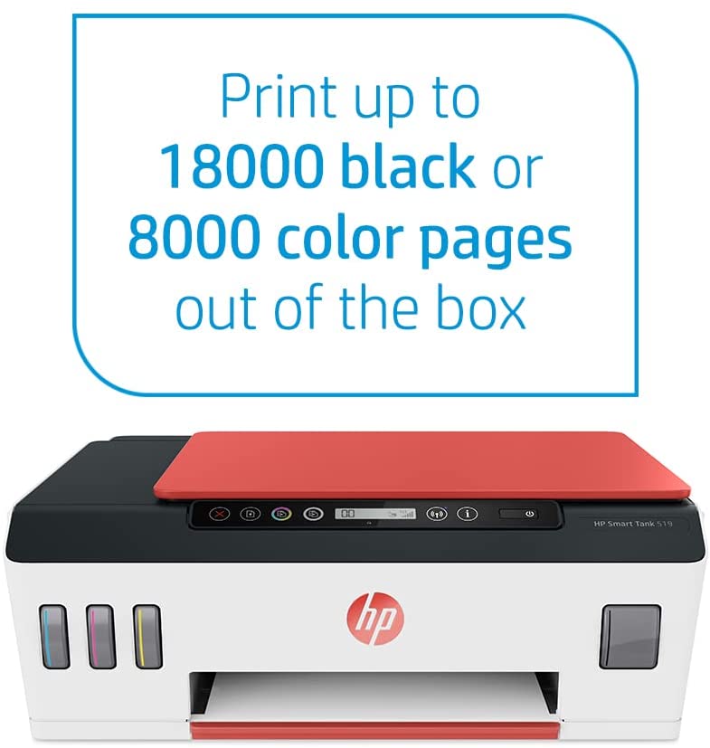 HP Smart Tank 519 Wireless, Print, Scan, Copy, All In One Printer, Print up to 18000 black or 8000 color pages - Red/White [3YW73A]