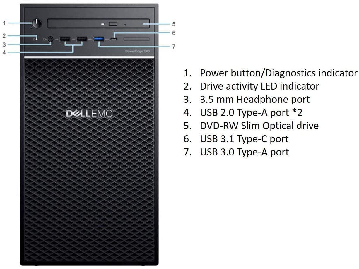 Dell PowerEdge T40 Server, BTX Intel Xeon (E-2224G 3.5GHz,8GB 2666MT/s DDR4,1TB 7.2K RPM SATA)