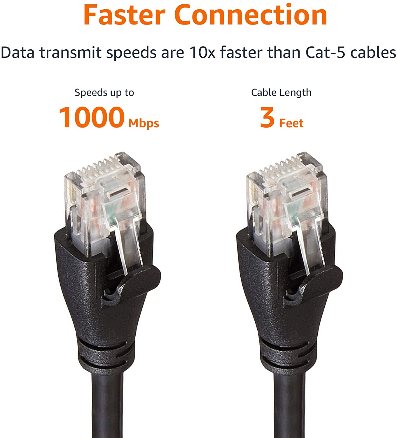 RJ45 Cat-6 Ethernet Patch Internet Cable - 3 Feet (0.9 Meters)