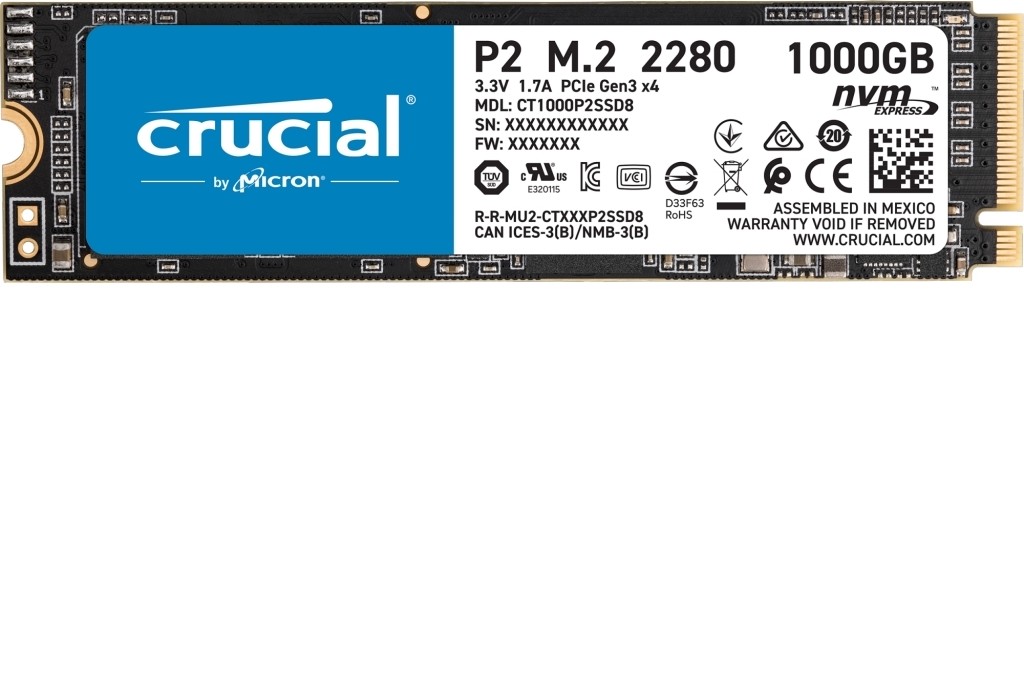 Crucial P2 1TB 3D NAND NVMe PCIe M.2 SSD, PCIe NVMe Gen 3 | CT1000P2SSD8